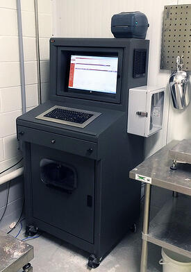 After visiting the plant, ITSENCLOSURES made the recommendation to deploy the NEMA 12 IceStation TITAN freestanding enclosure in areas that did not require a heavy washdown. Each Puratos enclosure houses a barcode printer, computer, and a wide screen format monitor. ITSENCLOSURES also provided a side mounted enclosure to house a hand-held barcode scanner, installed on the right side of the cabinet. An industrial, heavy-duty keyboard/hula point combo mounts to the sloped work surface.