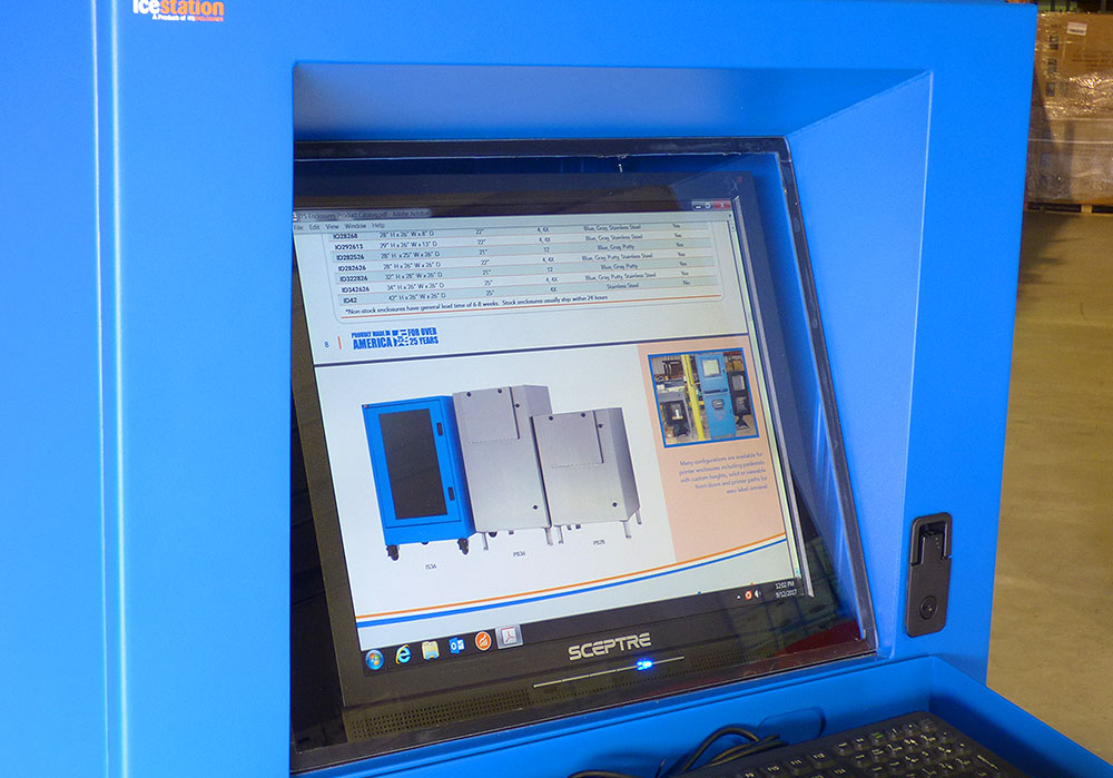 The Puratos location in Pennsauken, New Jersey was in the process of merging two manufacturing plants and were determined to upgrade their enclosure equipment. They desired a freestanding enclosure to house a barcode printer, computer, keyboard, scanner, mouse, and a wide screen monitor. Puratos was also interested in ITSENCLOSURES’ line of flat panel monitor enclosures, which can be bolted to a wall, pedestal, or arm.