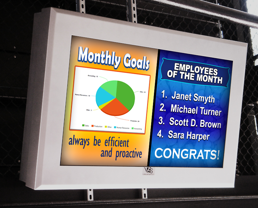 To keep employees motivated and attitudes positive, digital signage can also be utilized to display workplace goals and performance statistics. Keeping employees informed of key metrics, quality control or inventory levels can help drive enthusiasm. A simple daily ‘to-do list’ or real-time statistics on a digital screen will do wonders. According to the article, ‘Why Leaders Need To Embrace Employee Motivation‘ motivation is key, “Employees whose managers involve them in goal setting are 3.6 times more likely than other employees to be engaged… [Furthermore], Gallup estimates the cost of poor management and lost productivity from employees in the U.S. who are not engaged or actively disengaged to be between $960 billion and $1.2 trillion per year.”