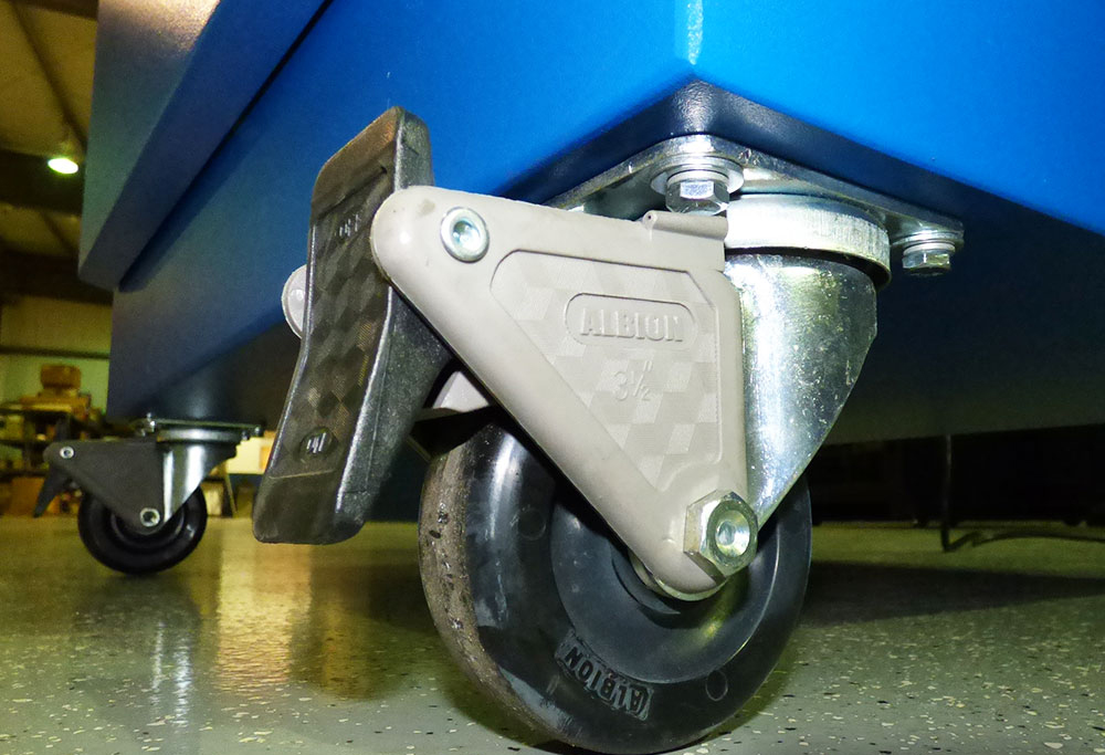 - Swivel casters are a standard feature (front are lockable)