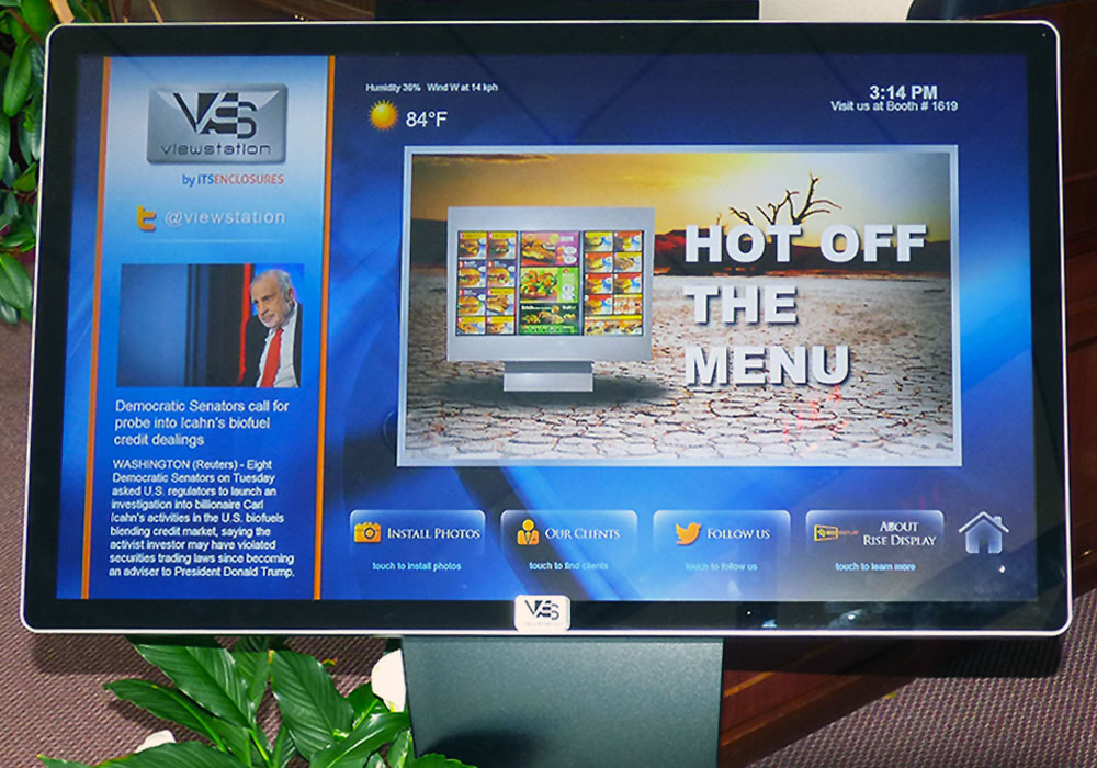 ViewStation Universal: Environmentally sealed LCD enclosure for use indoors and outdoors. The ViewStation Universal digital signage enclosure is ideal in high traffic areas where vandalism, theft and various weather concerns pose problems. Available in sizes ranging from 32″ to 75″ in single and double sided configurations.