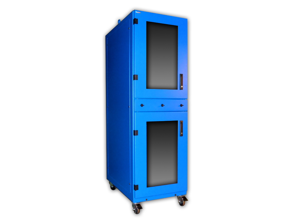 The IRWR72 industrial enclosure offers 34U of rack mount space and maintains a NEMA 12 rating. The rack is separated by an integrated keyboard drawer in between the upper and lower door. Each section offers 17U’s each and come complete with fully adjustable front to rear 19″ wide rack mount rails.