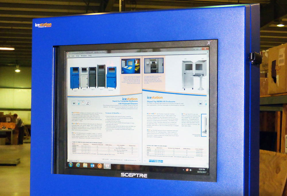 The heavy-duty IceStation free-standing kiosk line is designed to enclose a wide variety of electronics on manufacturing floors and various other industrial applications.