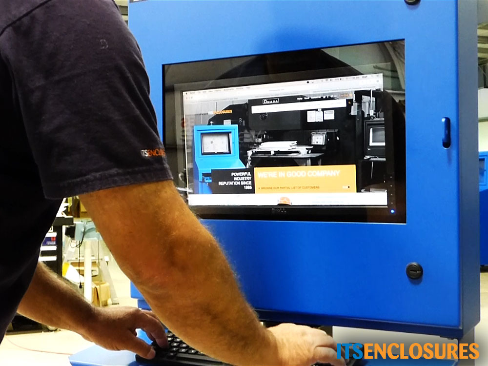 The IO series of operator interface enclosures accommodate up to a 22″ wide-screen monitor. Designed for use with flat panel monitors, thin client and small form PC’s, the IO monitor enclosure cabinets are the perfect solution for limited space environments. Customize your monitor enclosure with a pedestal (mobile or bolt down), wall mount or various keyboard trays and drawers.